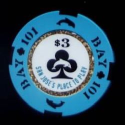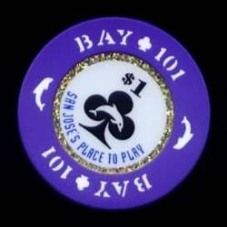 | 14. | Bay 101 San Jose CA, 1.00 Blue chip, Bud Jones mold, white inserts, gold foil circle