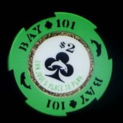 | 15. | Bay 101 San Jose CA, 2.00 Green chip, Bud Jones mold, white inserts, gold foil circle