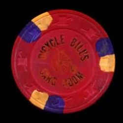 | 17. | Bicycle Bill's Card Room Point Loma CA, 0.25 Red chip, 3 navy/yellow inserts, H&C mold, circle inlay, hotstamped
