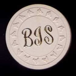 | 23. | BJS Card Room Atascadero CA, 0.50 Cream chip, HHR mold, circle inlay, hotstamped