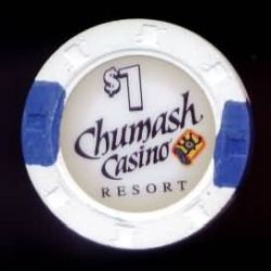 | 42. | Chumash Casino Santa Ynez CA, 1.00 White chip, 2 wide navy inserts