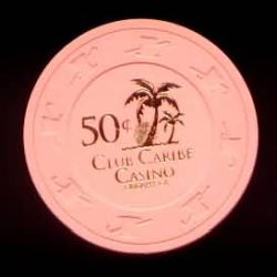 | 46. | Club Caribe Cudahy CA, 0.50 Orange chip, H&C mold, circle inlay, palm trees design, hotstamped