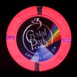 | 57. | Crystal Park Casino Crystal City CA, 3.00 Red chip, H&C mold, 2 purple / 2 black inserts, circle inlay, prism design