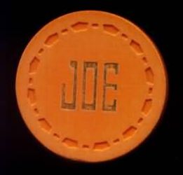 | 62. | Easton Card Room Bakersfield CA, Orange chip, small crown mold, hotstamped, Joe Otis Easton