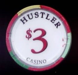 | 90. | Hustler Casino Gardenia CA, 3.00 Red chip, green/olive/yellow inserts, circle inlay