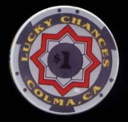| 97. | Lucky Chances Colma CA, 1.00 Blue chip, smooth finish, 8-pointed star design