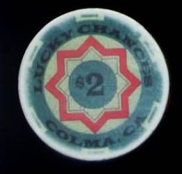 | 98. | Lucky Chances Colma CA, 2.00 Brown chip, smooth finish, 8-pointed star design