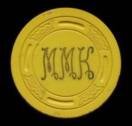 | 102. | M.M.K. ElMonte CA, Yellow chip, Large Crown mold, circle inlay, hotstamped, Maude K. Knode