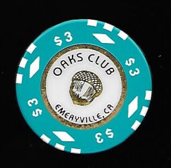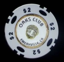 | 116. | Oaks Club Emeryville CA, 3.00 Gray chip, white inserts, gold foil circle inlay