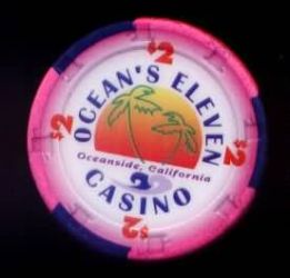 | 119. | Ocean's Eleven Oceanside CA, 2.00 Pink chip, H&C mold, orange center design with palm trees
