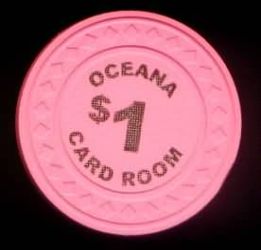 | 122. | Oceana Card Room Oceana CA, 1.00 Pink chip, hotstamped, diamond mold