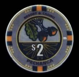 | 131. | Pechanga Casino Temecula CA, 1.00 Gray chip, smooth finish, 4 navy/orange inserts, acorns