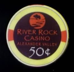 | 145. | River Rock Casino Alexander Valley CA, 0.50 Yellow chip, smooth finish, 2 red inserts, black circle inlay