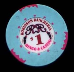 | 147. | Robinson Rancheria Nice CA, 1.00 Blue chip, red inserts, circle inlay, RR