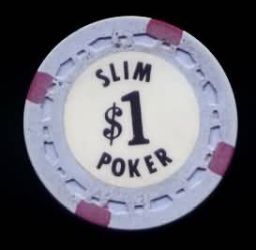 | 60. | E. J. Close Alta Loma CA, 0.05 White chip, Small Crown mold, hotstamped, 5 cent denomination