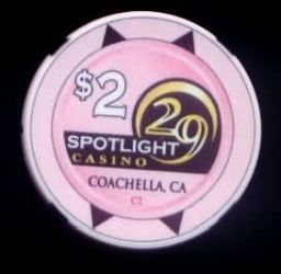 | 174. | Spotlight 29 Casino Coachella CA, 2.00 Pink chip, smooth finish, 4 black rim inserts