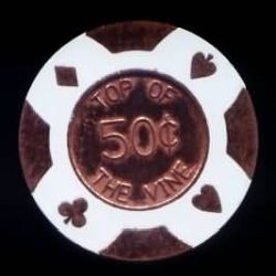 | 181. | Top of the Vine Lebec CA, 1.00 White chip, 4 suits mold, coin center, brass inserts