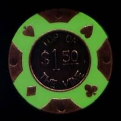 | 182. | Top of the Vine Lebec CA, 1.50 Green chip, 4 suits mold, coin center, brass inserts