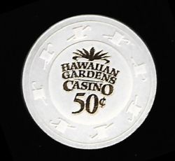 | 76. | Hawaiian Gardens Hawaiian Gardens CA, 0.50 Peach chip, circle inlay, hotstamped