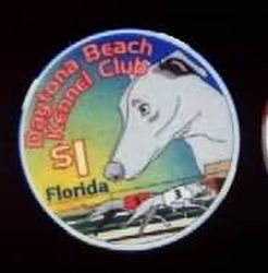 | 8. | Daytona Beach Kennel Club Daytona Beach FL, 1.00 Satin finish, 4 white rim inserts, greyhound dog design