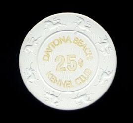 | 7. | Daytona Beach Kennel Club Daytona Beach FL, 0.25 White chip, Unicorn mold, circle inlay, hotstamped