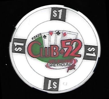 | 5. | Club 52 Melbourne FL, 1.00 White chip, smooth finish, 4 black rim inserts, Melbourne Greyhound