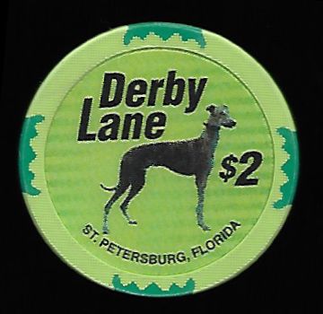 | 9. | Derby Lane St. Petersburg FL, 2.00 Green chip, 4 dark green inserts, circle inlay, greyhound