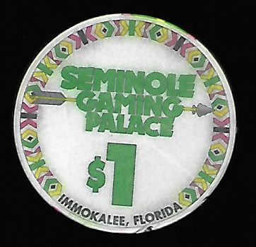| 25. | Seminole Gaming Palace Tampa FL, 1.00 Satin finish, white chip, ornate border