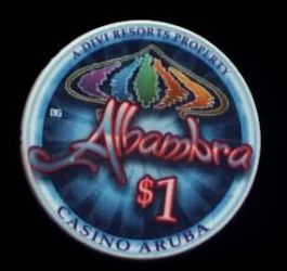 | 3. | Alhambra Casino Aruba, 1.00 Smooth chip, beautiful colorful blue design, Divi Resorts property