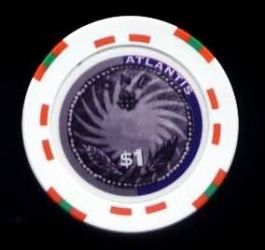 | 8. | Atlantis Paradise Island, 1.00 White chip, 4 orange/green inserts, orange dashes, photo center