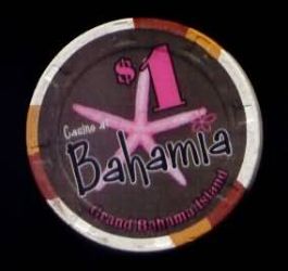 | 14. | Bahamia Grand Bahama Island Bahamas, 1.00 White chip, 3 brown/orange inserts, brown circle inlay, starfish design