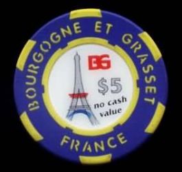 | 15. | Bourgogne et Grasset Beaune France, 5.00 Mfg Sample, NCV, blue chip, 6 yellow inserts, circle inlay, oversized