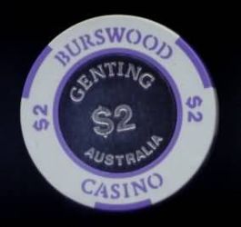 | 16. | Burswood Casino Genting Australia, 2.00 White chip, coin center, 3 blue inserts