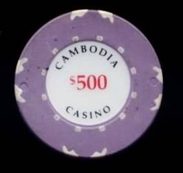 | 20. | Cambodia Casino Cambodia, 500.00 Gray chip, 8 irregular peach inserts, circle inlay