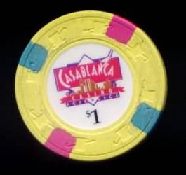 | 21. | Casablanca Casino Wyndham Aruba, 1.00 Yellow chip, H&C mold, 4 gray inserts, circle inlay