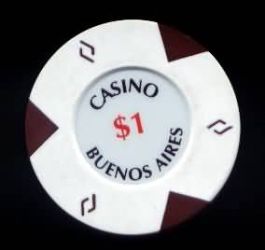 | 22. | Casino Buenos Aires Argentina, 1.00 White chip, dk brown triangle inserts, diamond mold