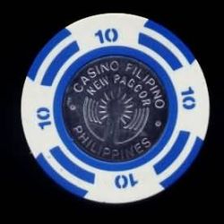 | 28. | Casino Filipino New Pagcor Philippines, White chip, 4 pairs parallel wide blue inserts, metal center