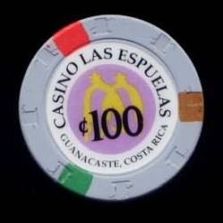 | 34. | Casino Las Espuelas Guanacaste Costa Rica, 1.00 Gray chip, 1 green / 1 orange / 1 olive insert
