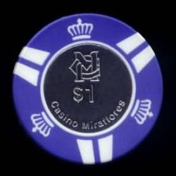 | 35. | Casino Miraflores Lima Peru, 1.00 Blue chip, coin center, 6 white inserts, crown mold