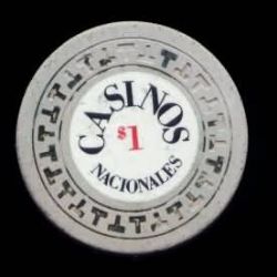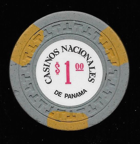 | 40. | Casinos Nacionales Panama, 1.00 Gray chip, 3 wide rust inserts, T mold, large denom