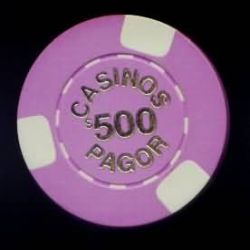 | 63. | Casinos Pagor Caribbean, 500.00 Pink chip, 3 off-white inserts, circle inlay, hotstamped