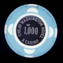 | 64. | Cheju Washington Korea, 1000.00 Light blue chip, 4 white inserts, white semicircles, metal center