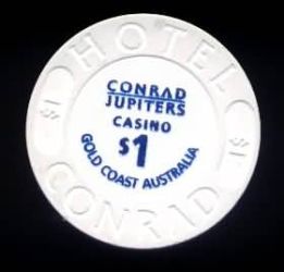 | 71. | Conrad Jupiter Gold Coast Australia, 1.00 White chip, house mold, blue hotstamp, circle inlay