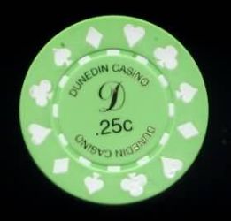 | 83. | Dunedin Casino Dunedin New Zealand, 0.25 Light green chip, 12 suits inserts, circle inlay, hotstamped