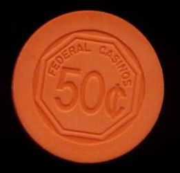 | 94. | Federal Casinos Tasmania Australia, 0.50 Orange plastic chip, hexagon inlay