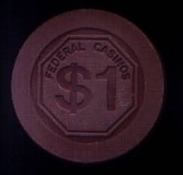 | 95. | Federal Casinos Tasmania Australia, 1.00 Dark brown plastic chip, hexagon inlay