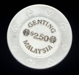 | 96. | Genting Malaysia, 2.50 White chip, suits mold, hotstamped in gold in center