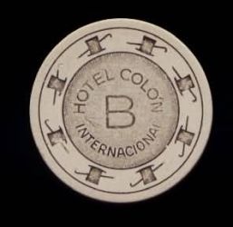 | 84. | Embajador Hotel Casino Dominican West Indies, 1.00 Beige chip, Ewing mold, circle inlay, hotstamped, E.D.R.