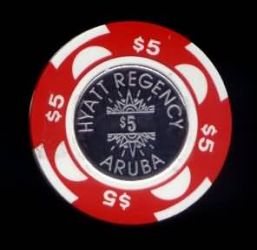 | 114. | Hyatt Regency Aruba, 5.00 Red chip, white inserts, coin center