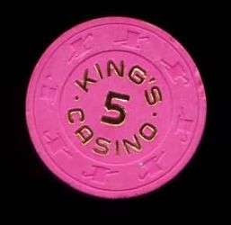 | 117. | King's Casino Antigua, W.I., 5.00 Pink chip, H&C mold, circle inlay, hotstamped
